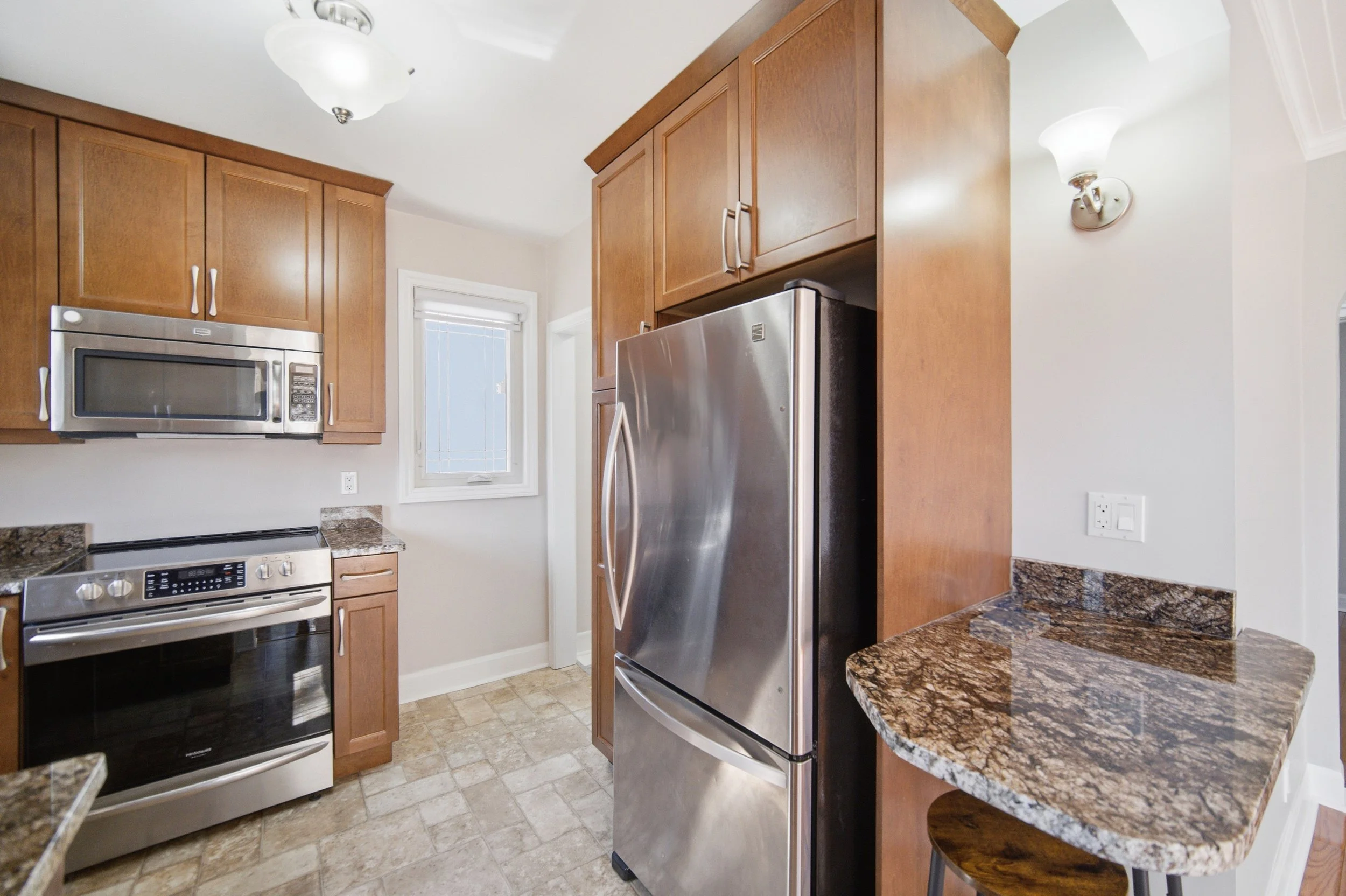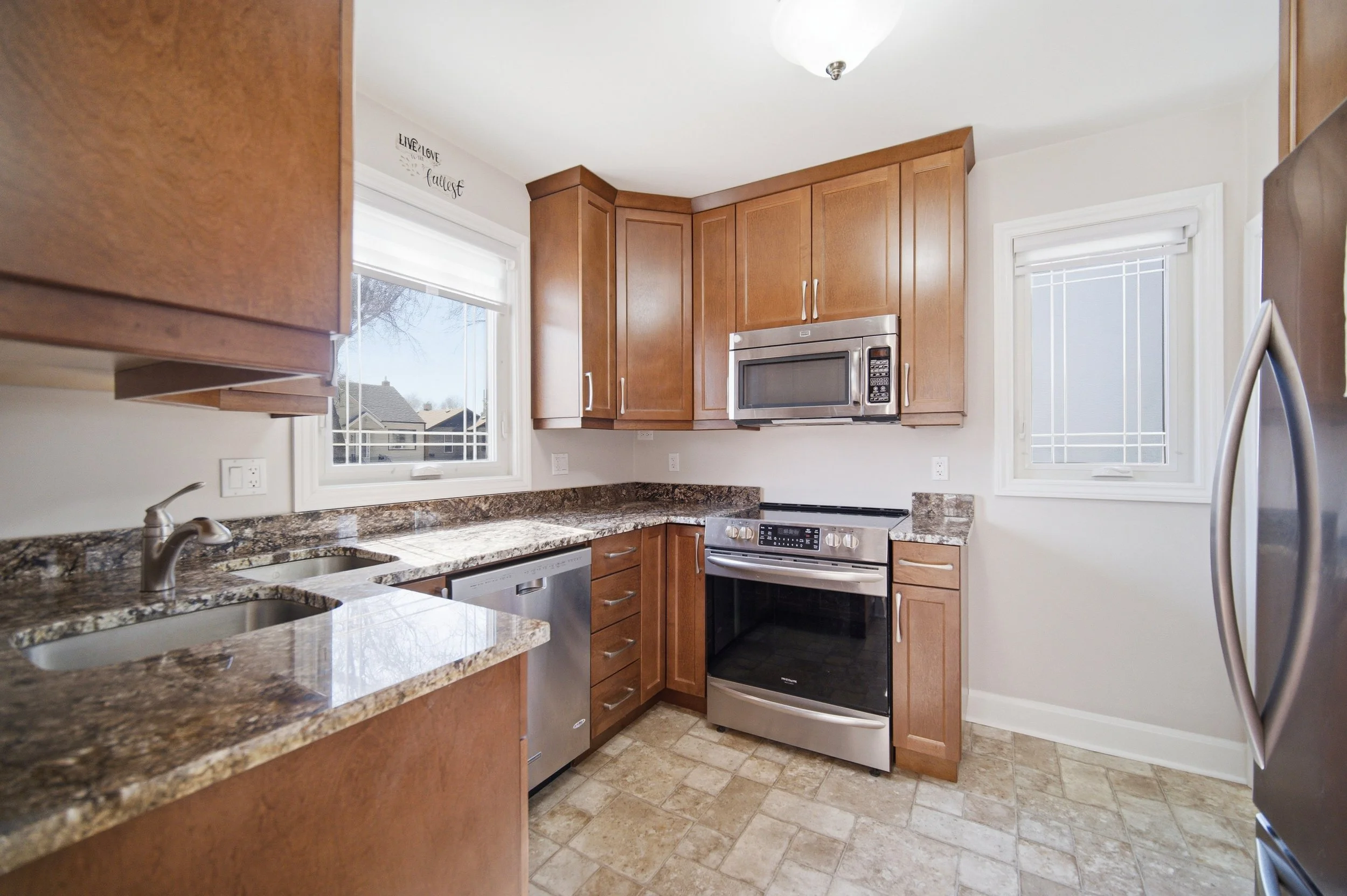 Desirable 2 bedroom, 2 full bath bungalow on quiet West Kildonan street. Fully updated and renovated home with hardwood floors through the main floor areas. Custom kitchen featuring stunning granite countertops, soft close cabinetry, dual sinks, garburator, OTR and SS appliances. Two good sized bedrooms on the main floor with an updated 4-pc main floor bath complete with custom vanity & tiled tub surround. Fully finished lower level offering a bonus office/hobby room space, large rec room area, custom wet bar/kitchenette w/ additional fridge included. Newer basement flooring with dricore underlay. Washer/Dryer included (2yrs old). Other notable features include newer PVC windows, high eff furnace, central A/C, central vacuum, 100AMP electrical, copper electrical & plumbing, sump pump and newer shingles (house & garage). Situated on a fully landscaped and fenced (120ft deep) lot with single detached garage complete with auto-opener and large interlocking brick parking pad. Newer concrete sidewalk & low maintenance exterior including aluminum eaves & fascia. Centrally located close to Clara Hughes park, schools, grocery and public transit. A fantastic home that shows A+.