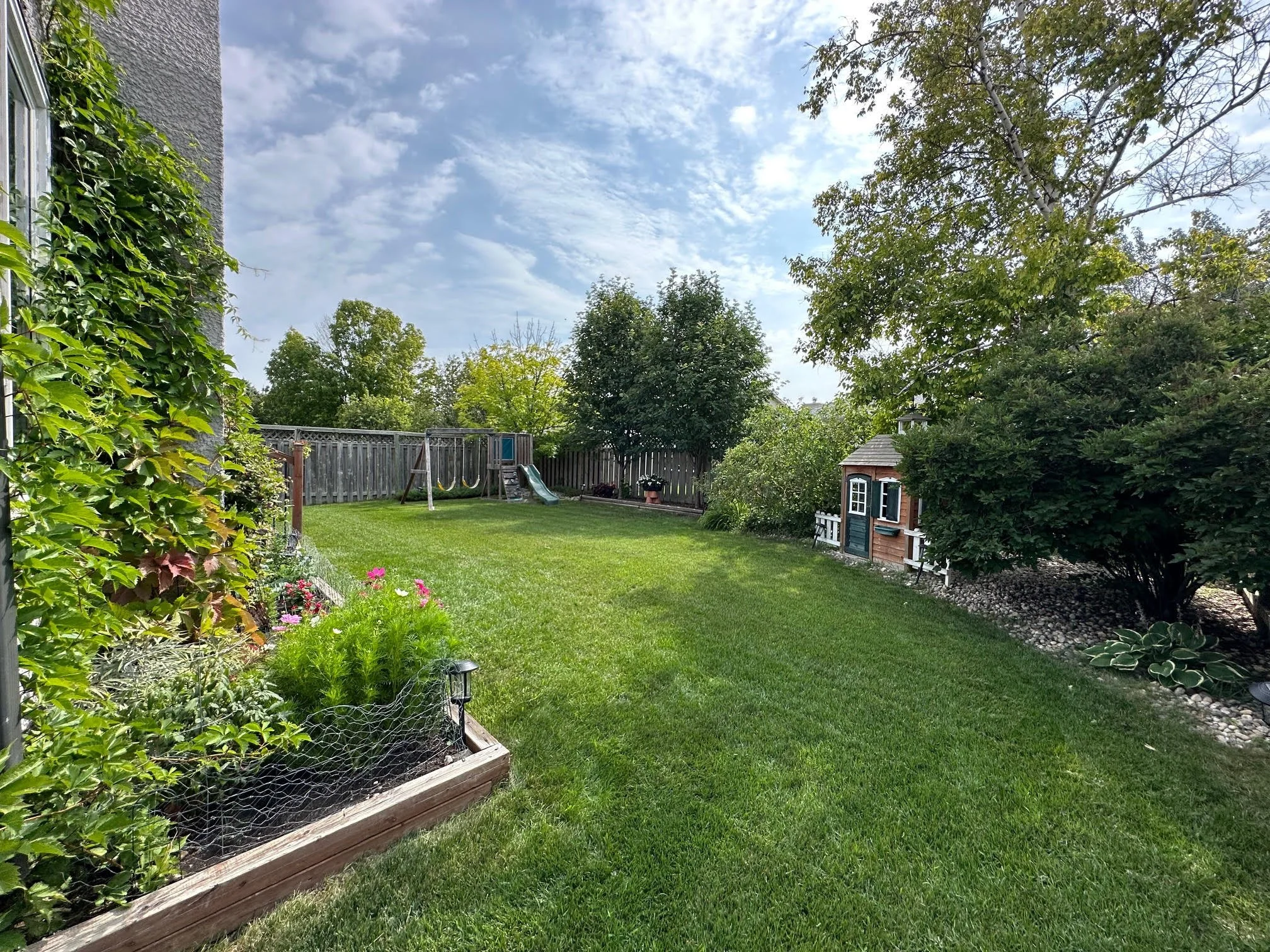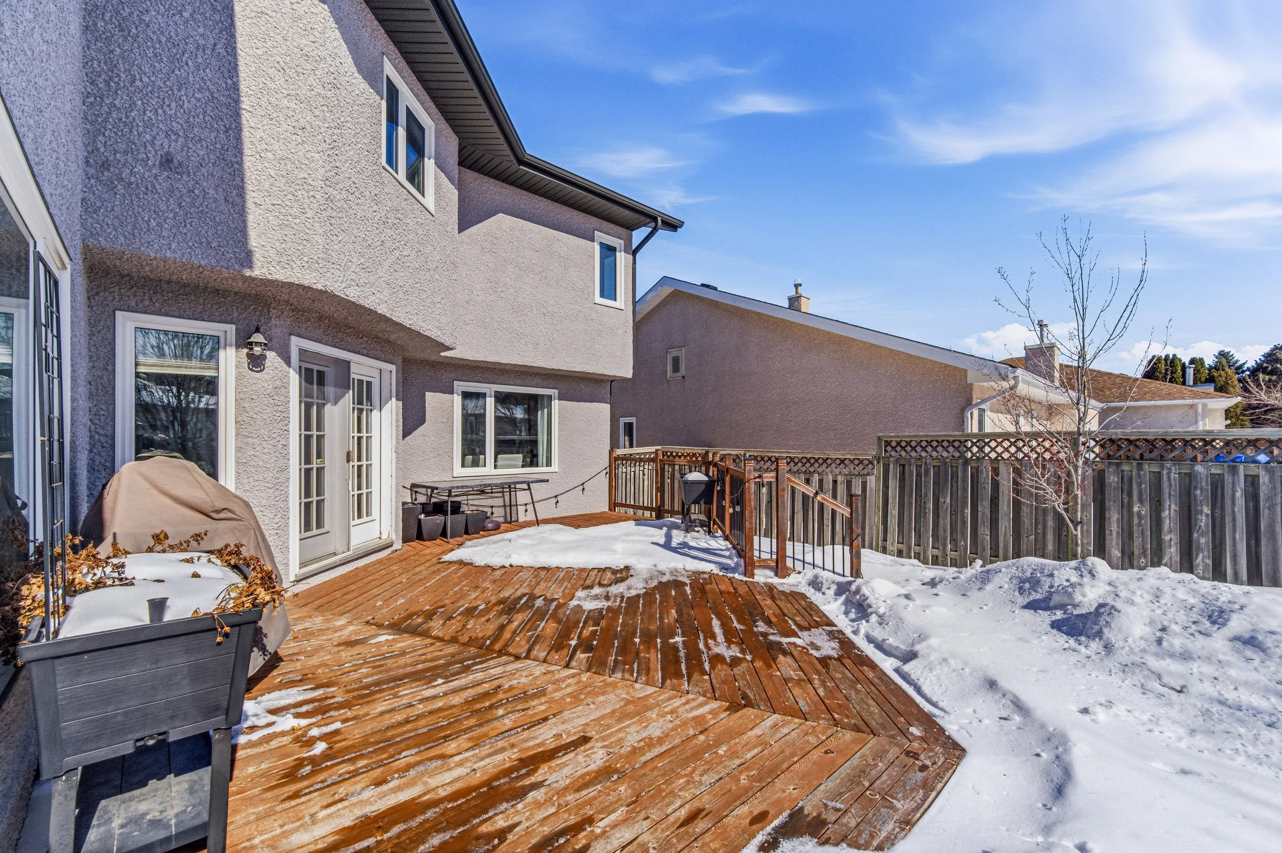 Welcome to Whyte Ridge! This 4 bedroom, 3.5 bath two storey is located in one of Winnipeg's most desirable communities. Impressive from the moment you walk in! Expansive 11ft ceilings through the Living Room w/ engineered hdwd floors & large West facing arched windows afford tons of natural light. Spacious LR/DR plan flowing into a sizeable eat-in kitchen featuring espresso maple cabinetry, granite countertops, stone tile backsplash, built-in OTR microwave & SS appliances. Garden doors to the rear deck and a cozy sunken family room area with brick-faced wood burning FP. Main floor laundry/2-pc bath combo. Upstairs you'll find an impressive Primary Suite complete w/ french doors, double-mirrored walk-thru closet and 4-pc ensuite bath w/ deep soaker tub. Two additional bedrooms & 4-pc main bath w/ soaker tub & honeycomb tile floor. Fully finished basement including large 4th bdrm, 3-pc bath, dedicated TV/media room and two additional areas for gym, office or kids play area. High eff furnace ('11), central A/C ('23), soffits/fascia/eaves ('17), windows ('15) & shingles ('15). Fully fenced backyard with large cedar deck, fully landscaped & plenty of room room to run!